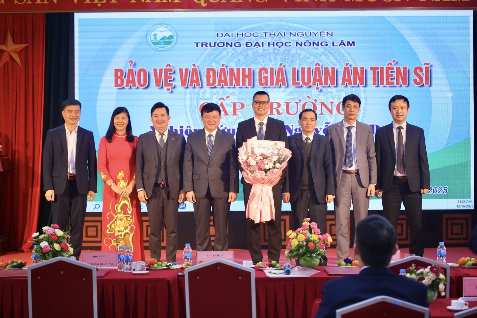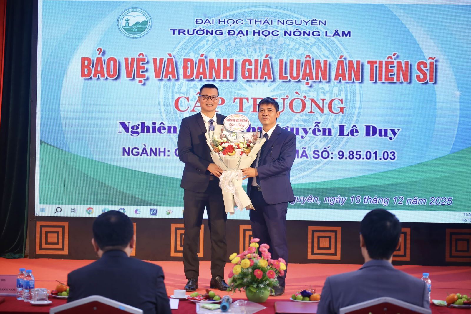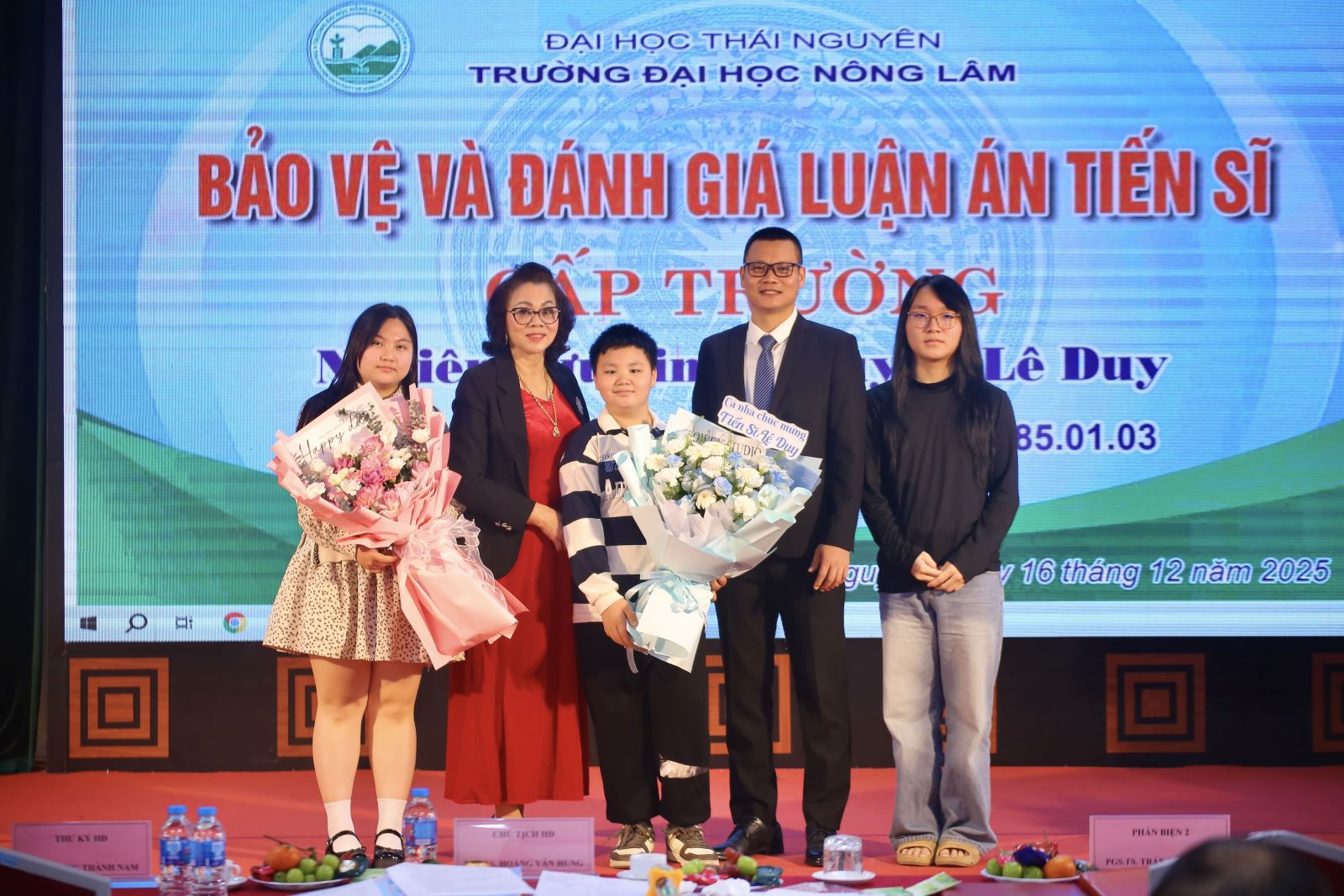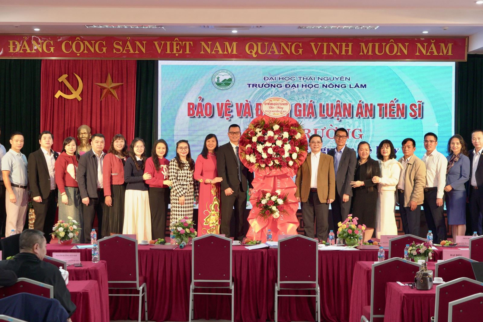 Buổi bảo vệ luận án tiến sĩ của nghiên cứu sinh Nguyễn Lê Duy diễn ra thành công tốt đẹp trong không khí trang trọng, nghiêm túc và đầy ý nghĩa. Đây không chỉ là niềm vui, niềm tự hào của cá nhân nghiên cứu sinh và gia đình mà còn là minh chứng cho chất lượng đào tạo, nghiên cứu khoa học và uy tín học thuật của Trường Đại học Nông Lâm – Đại học Thái Nguyên trong công tác đào tạo sau đại học.